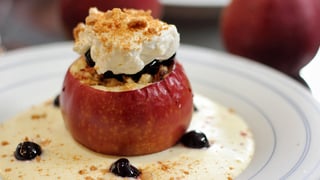 Den Backofen auf 160 Grad vorheizen. Je einen Deckel von den Stielenden der Äpfel schneiden. Die Kerngehäuse entfernen und das Fruchtfleisch mit einem Löffel oder Kugelausstecher ausstechen. Die Datteln hacken, Zitronenschale und... mehr