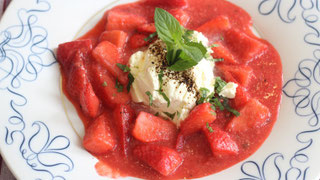 Die Erdbeeren putzen und in Stücke schneiden. Die Hälfte der Erdbeeren pürieren, die andere Hälfte mit etwas Zucker und grünem Pfeffer vermengen und eine ½ Stunde ziehen lassen. Das Erdbeerpüree in eine Pfanne geben und... mehr