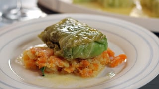 Den Mittelstrunk keilförmig aus dem Kohlkopf schneiden, dann die einzelnen Blätter lösen. Die Blätter nacheinander in kochendes Wasser geben und 1 Minute blanchieren. Die Kohlblätter anschließend in kaltem Wasser abschrecken und... mehr